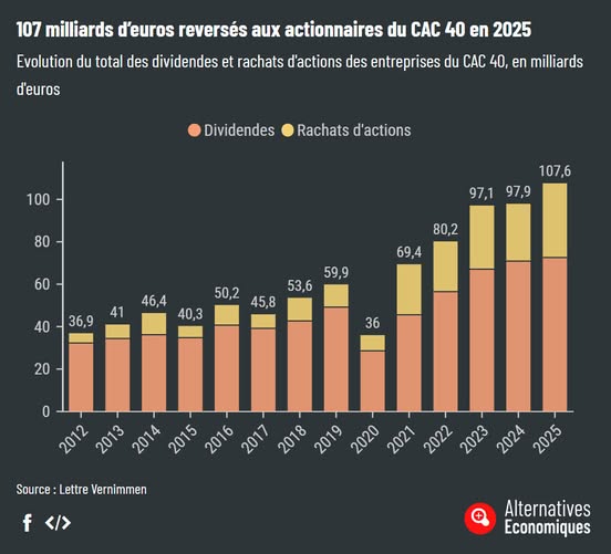 2025 une année record pour les actionnaires. 107 milliards, c’est seulement les dividendes versés par les entreprises du CAC 40.