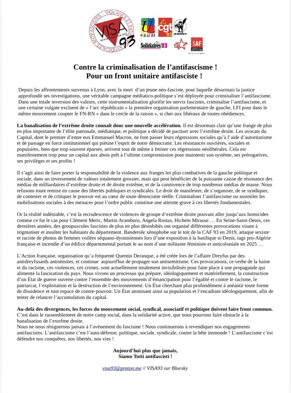 En toute solidarité nous publions ici le communiqué de l’UD Solidaires 69 :